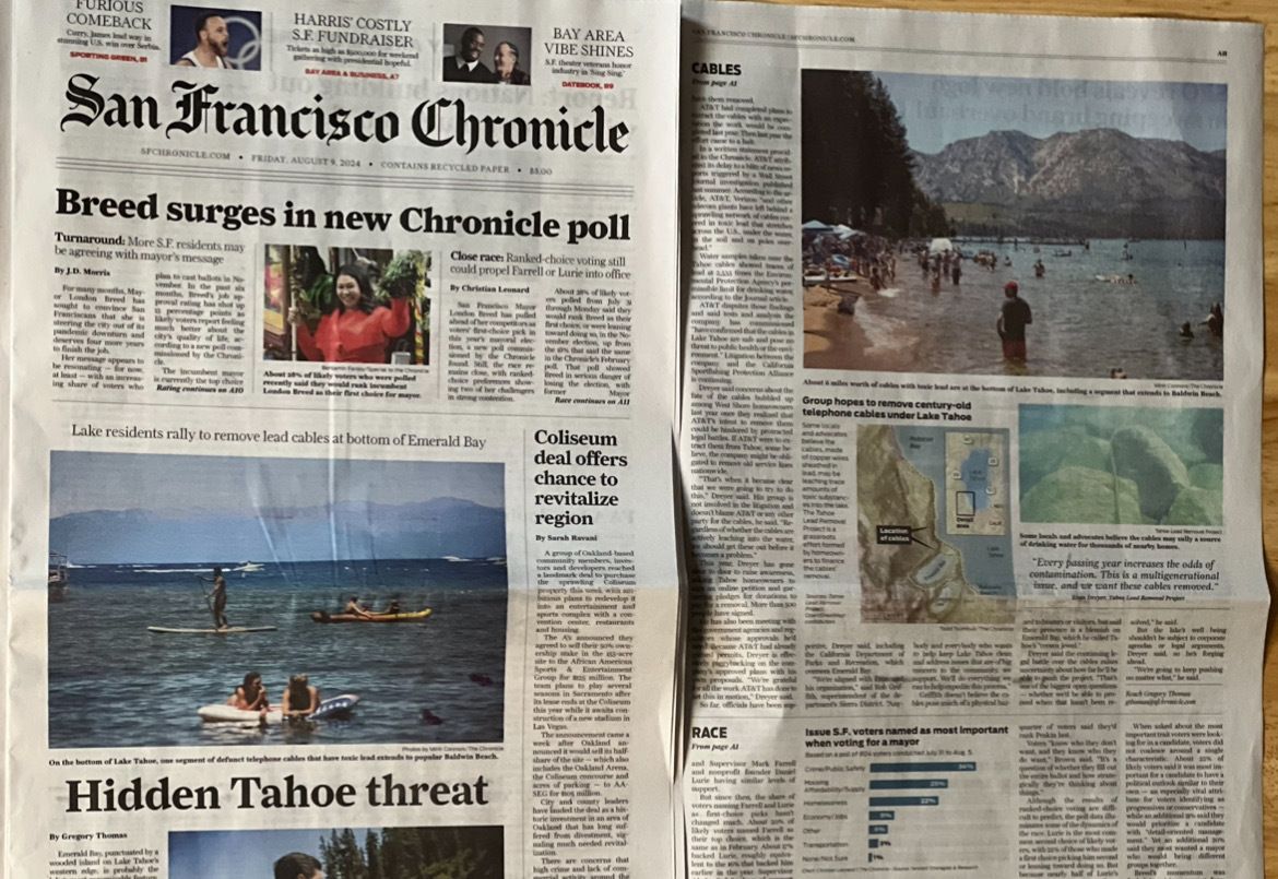 A huge thank you to Gregory Thomas for your coverage of this situation through the years, and the twists and turns along the way. Honored to be quoted and have our community effort presented. Our momentum continues to be driven by the wide range of stakeholders that love Lake Tahoe, and we will keep pushing until these lead cables are removed from the water