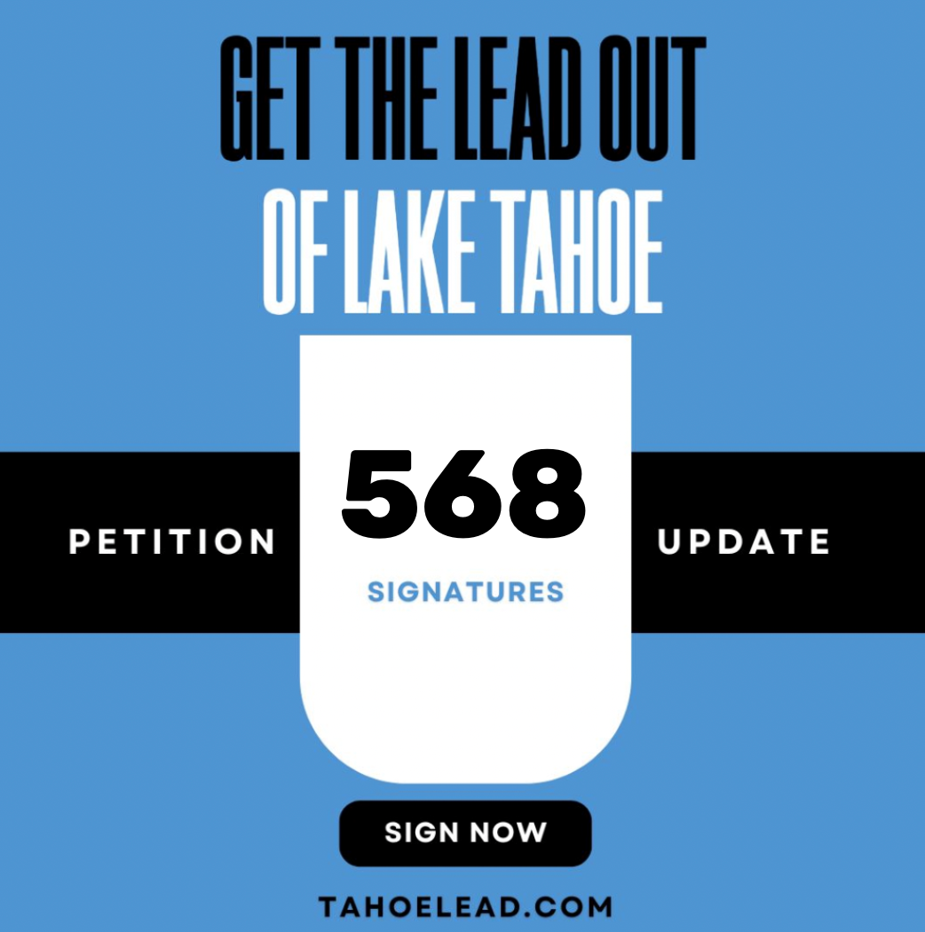 Excited to share that we are up to 568 signers on our petition to get the lead out of Lake Tahoe!